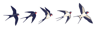 Эти крылья встречаются у ласточек (рис.14), соколов, куликов и водорезов. Длинные кости и сужение к концу позволяют развивать высокую скорость без большого сопротивления воздуха. Эффективны для перелётных птиц, но усложняют удержание в воздухе на низкой скорости.
